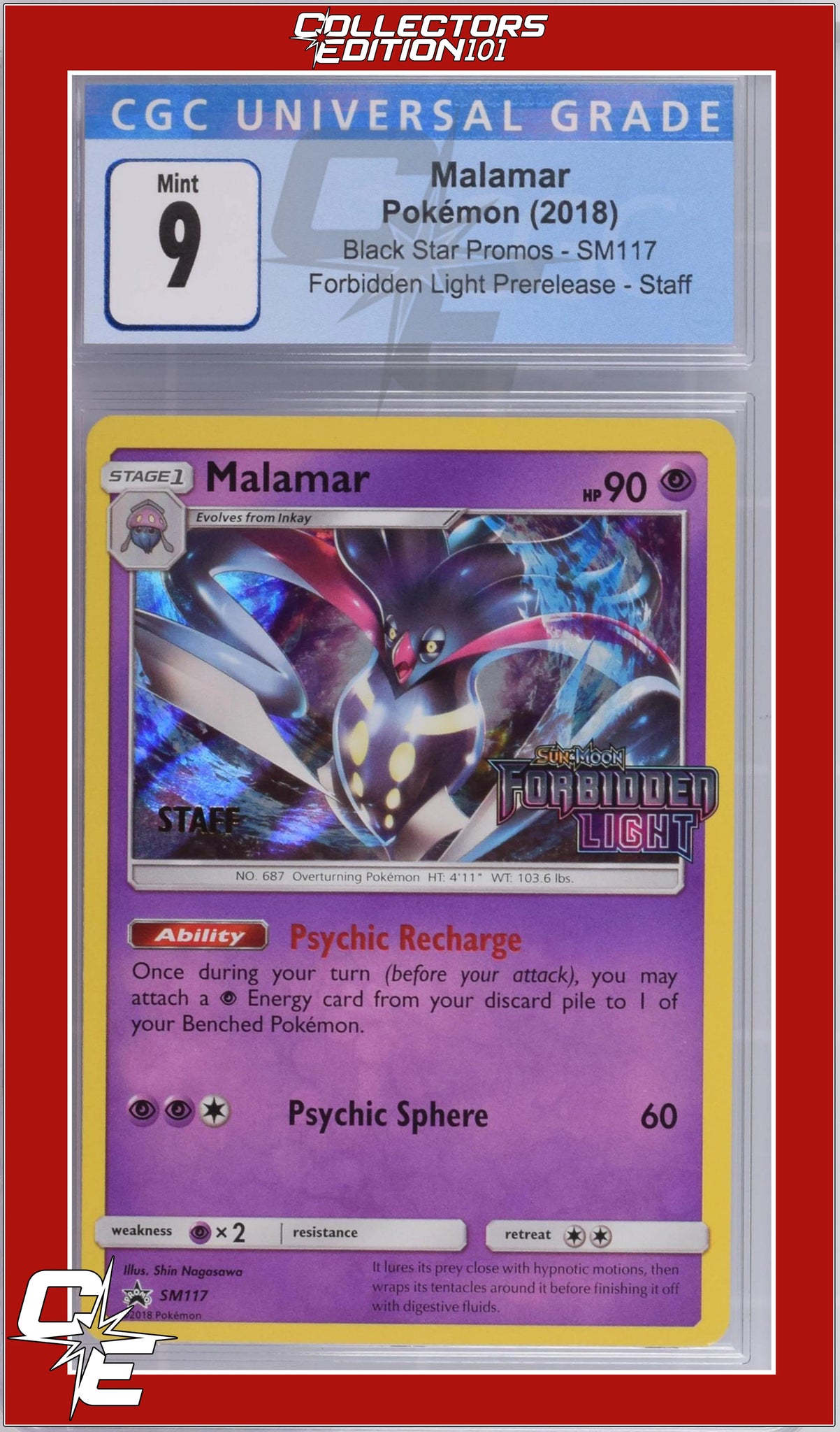SM Black Star Promo Malamar SM117 Forbidden Light Prerelease STAFF CGC 9
