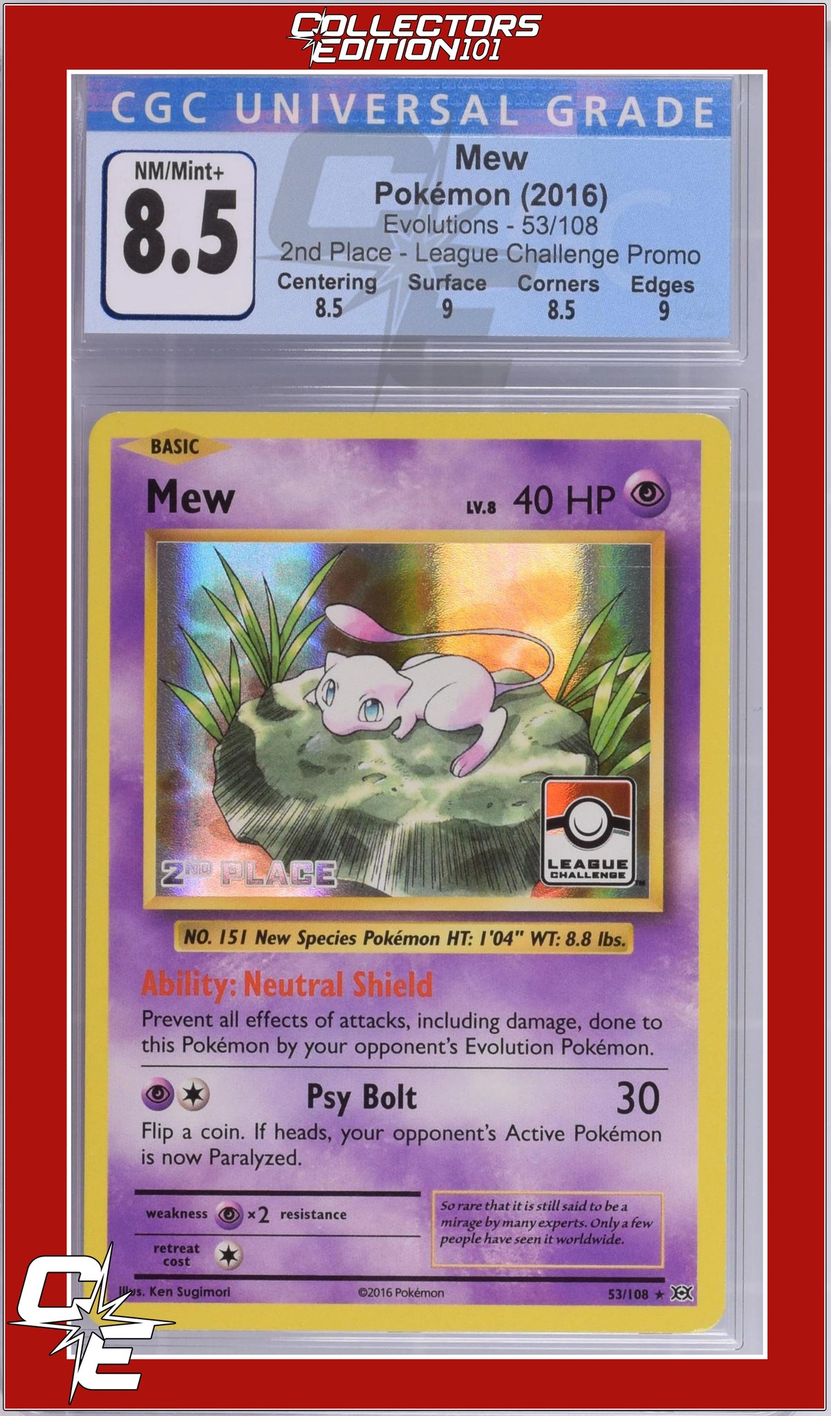 Evolutions Mew 53/108 2nd Place League Challenge CGC 8.5