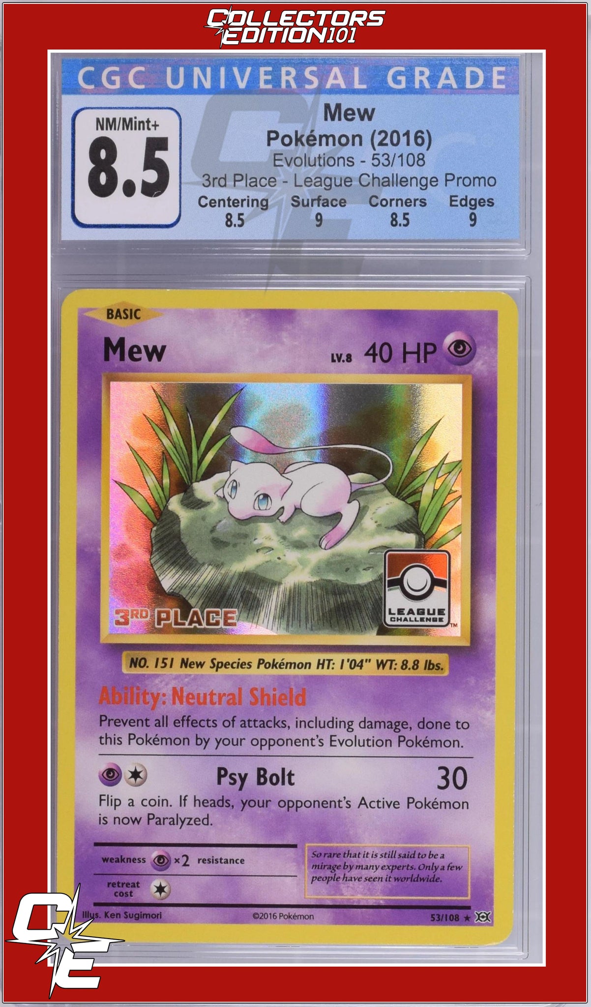 Evolutions Mew 53/108 3rd Place League Challenge CGC 8.5