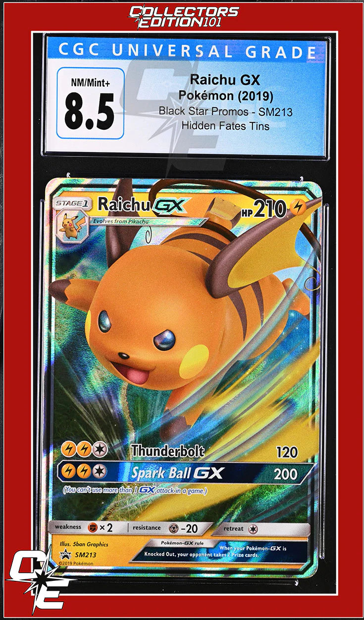 SM Black Star Promo Raichu GX SM213 Hidden Fates Tins CGC 8.5