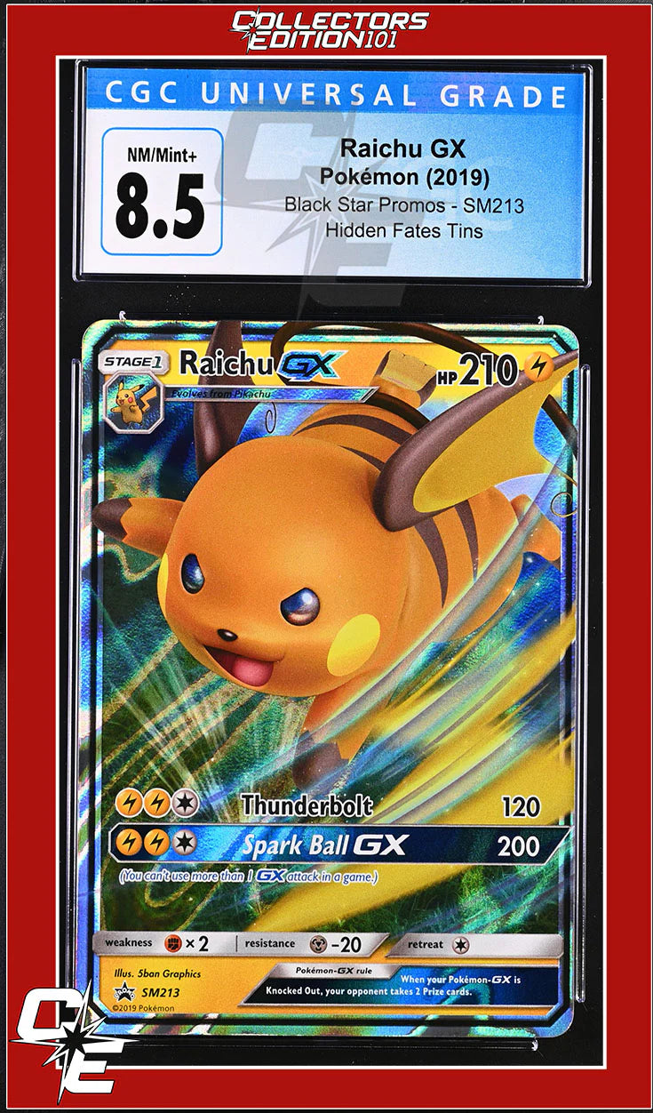 SM Black Star Promo Raichu GX SM213 Hidden Fates Tins CGC 8.5