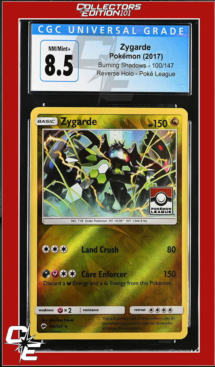 Burning Shadows Zygarde 100/147 Reverse Holo Pokemon League CGC 8.5
