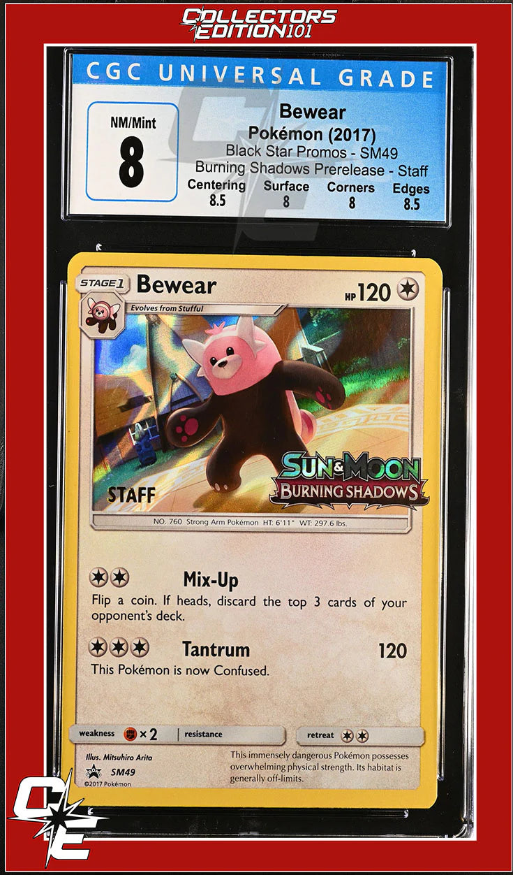 SM Black Star Promo Bewear SM49 Burning Shadows Prerelease STAFF CGC 8
