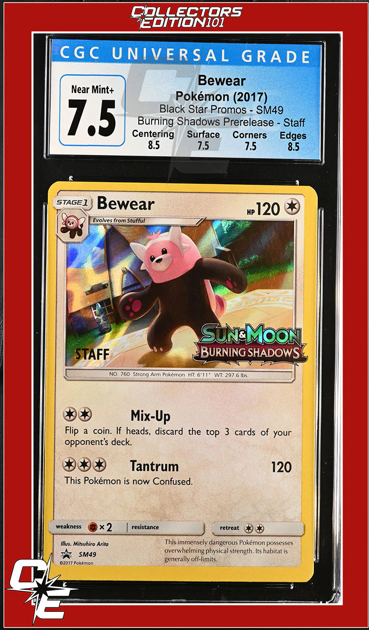 SM Black Star Promo Bewear SM49 Burning Shadows Prerelease STAFF CGC 7.5