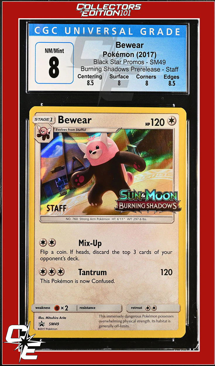 SM Black Star Promo Bewear SM49 Burning Shadows Prerelease STAFF CGC 8