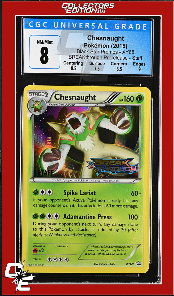 XY Black Star Promo Chesnaught XY68 BREAKthrough Prerelease STAFF CGC 8