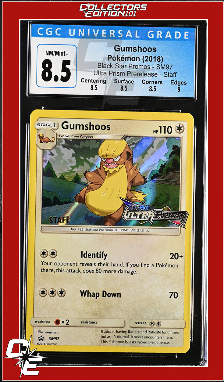 SM Black Star Promo Gumshoos SM97 Ultra Prism Prerelease STAFF CGC 8.5