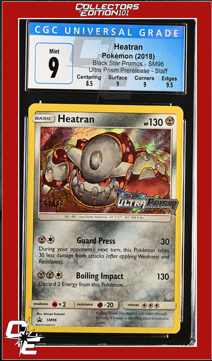 SM Black Star Promo Heatran SM96 Ultra Prism Prerelease STAFF CGC 9