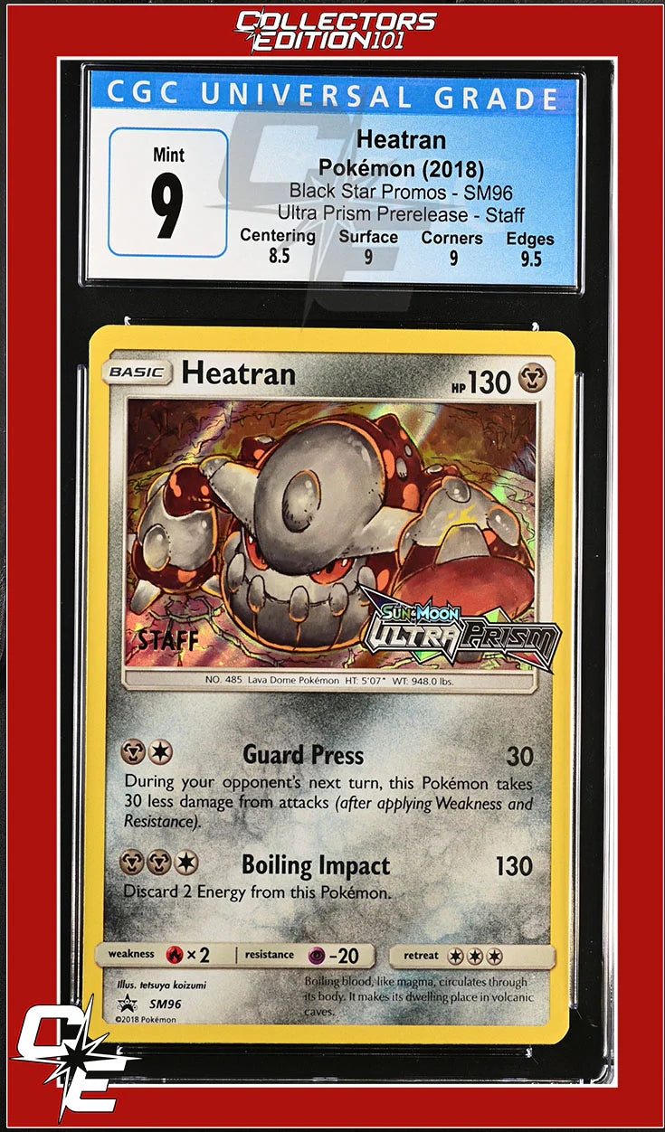 SM Black Star Promo Heatran SM96 Ultra Prism Prerelease STAFF CGC 9