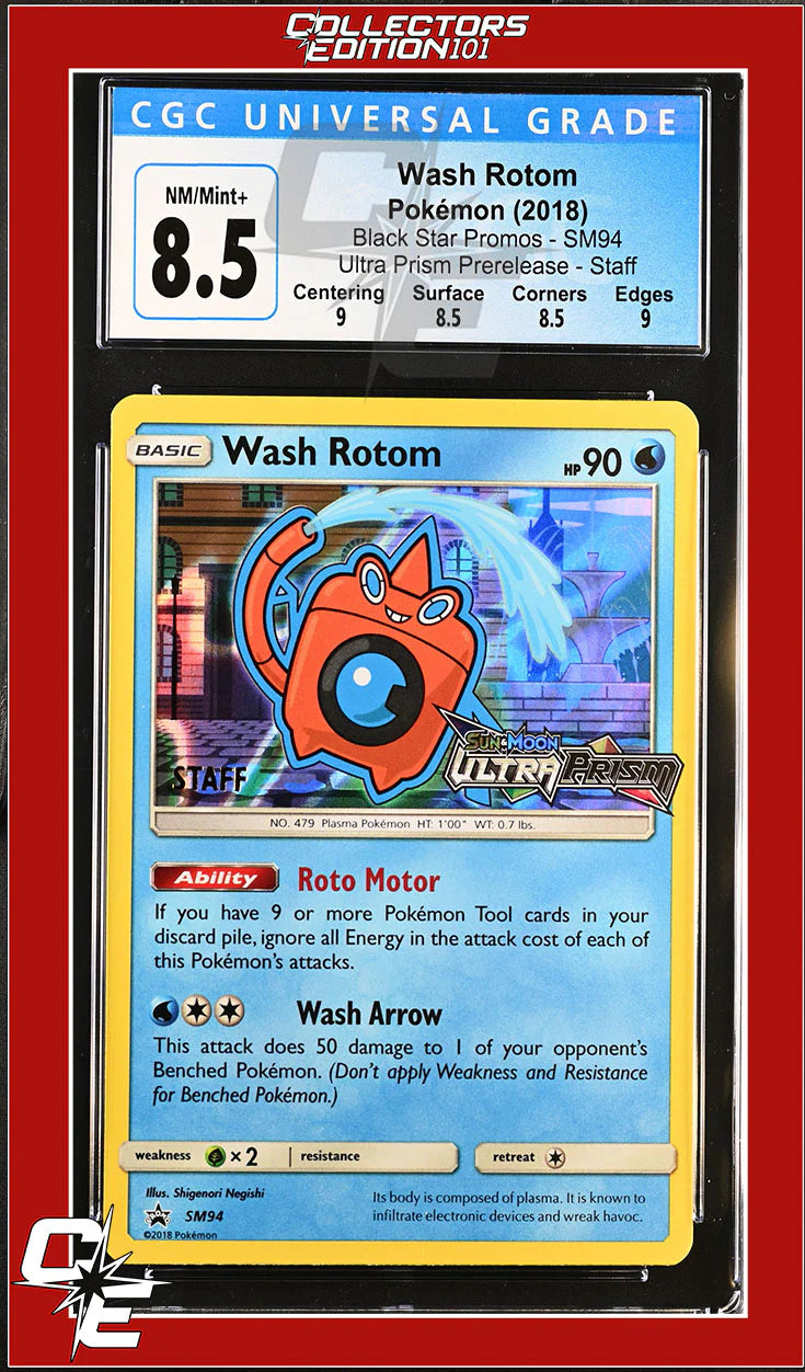 SM Black Star Promo Wash Rotom SM94 Ultra Prism Prerelease STAFF CGC 8.5