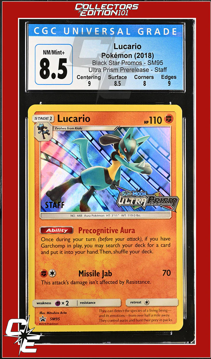 SM Black Star Promo Lucario SM95 Ultra Prism Prerelease STAFF CGC 8.5