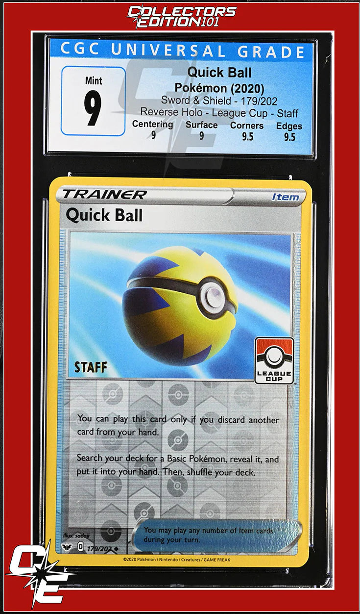 Sword & Shield Quick Ball 179/202 Reverse Holo League Cup - STAFF CGC 9