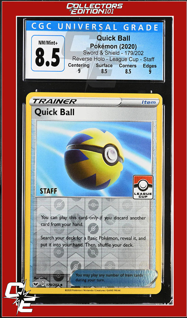 Sword & Shield Quick Ball 179/202 Reverse Holo League Cup - STAFF CGC 8.5
