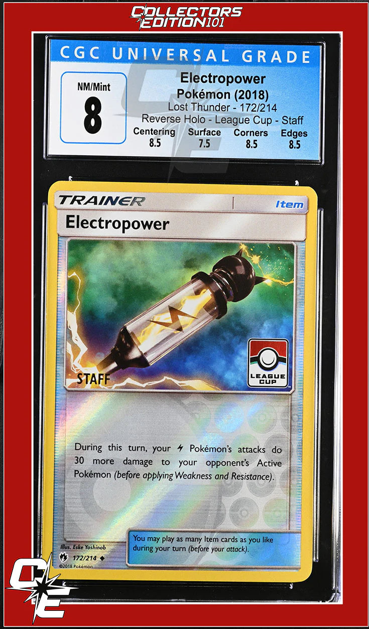 Lost Thunder Electropower 172/214 Reverse Holo League Cup - STAFF CGC 8