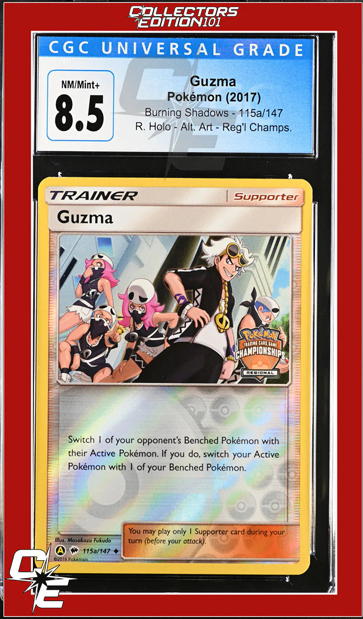 Burning Shadows Guzma 115a/147 Reverse Holo Regional Championships CGC 8.5