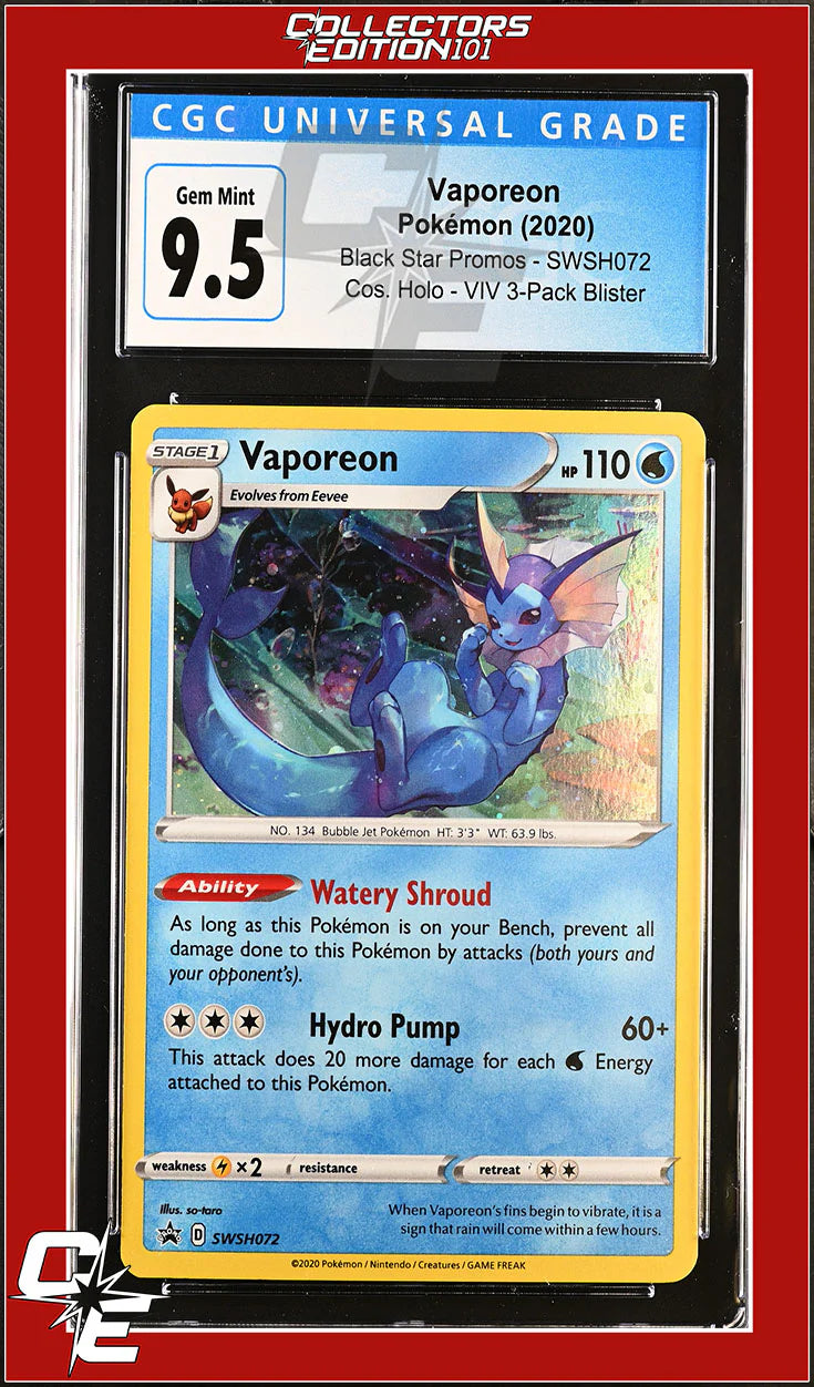 SWSH Black Star Promo Vaporeon SWSH072 Vivid Voltage 3-Pack Blister CGC GEM MINT 10