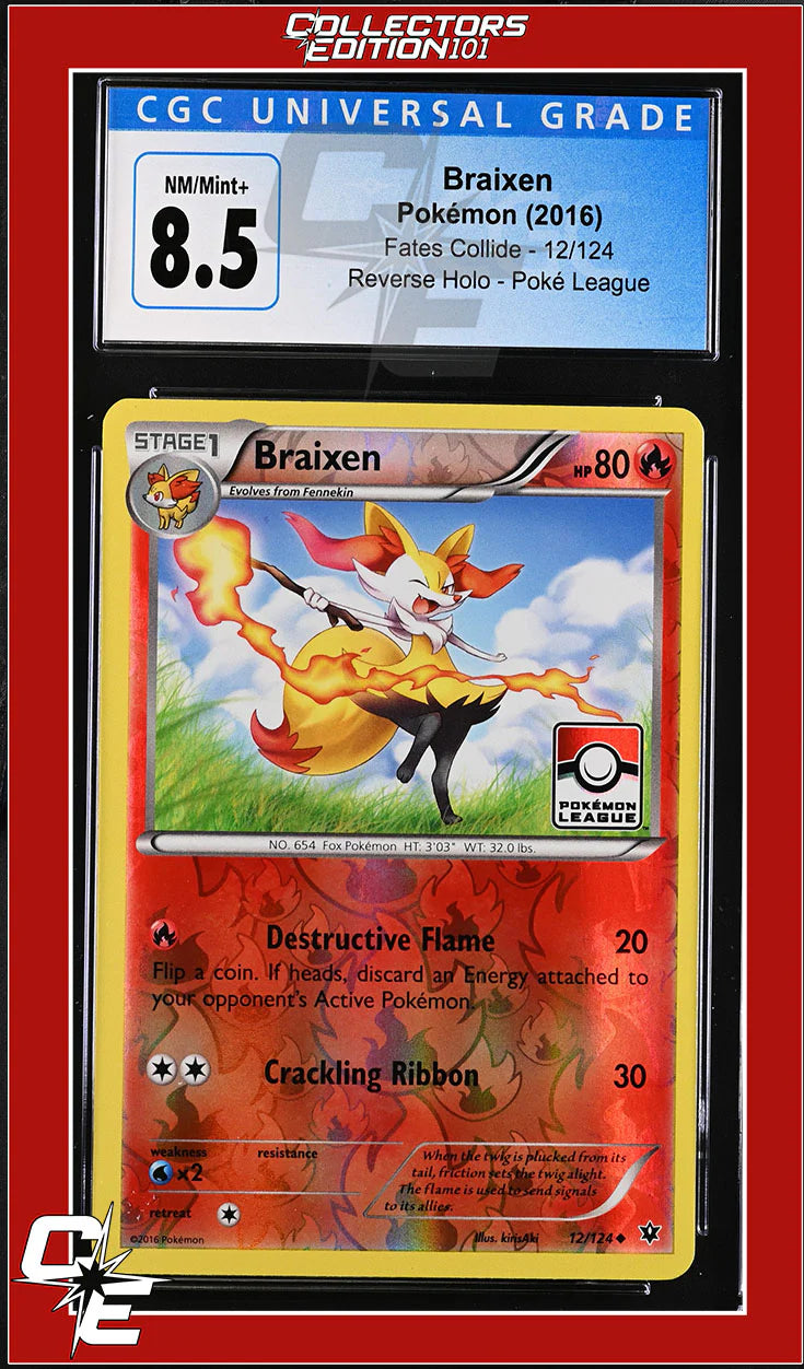 Fates Collide Braixen 12/124 Reverse Holo Pokemon League CGC 8.5