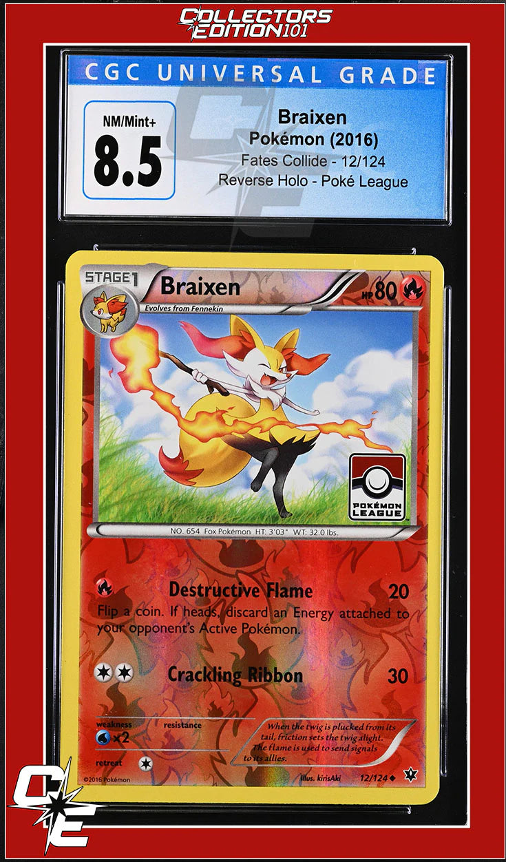 Fates Collide Braixen 12/124 Reverse Holo Pokemon League CGC 8.5