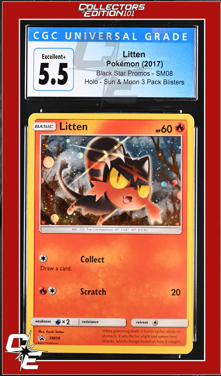 SM Black Star Promo Litten SM08 Sun & Moon 3 Pack Blister CGC 5.5