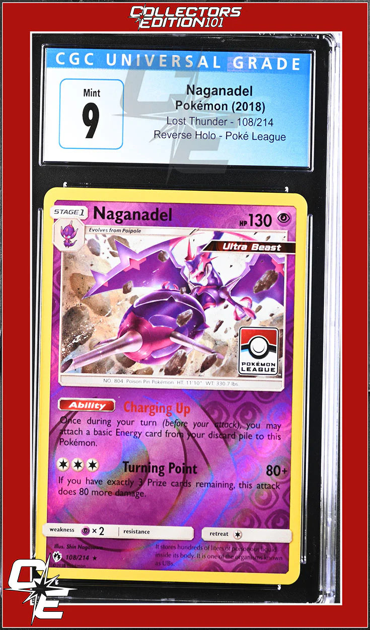Lost Thunder Naganadel Reverse Holo Pokemon League 108/214 CGC 9