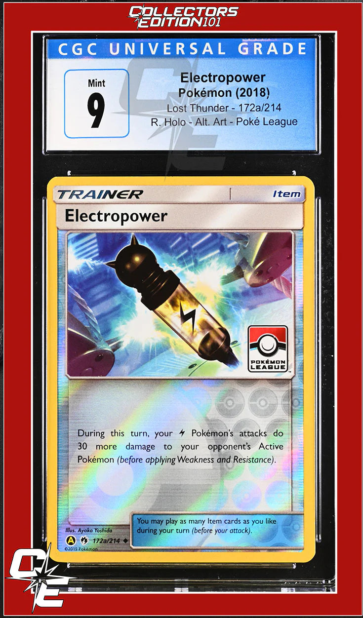 Lost Thunder Electropower 172a/214 Reverse - Alternate Art Pokemon League CGC 9