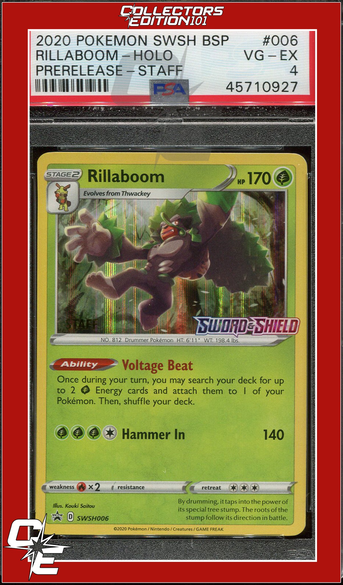 Black Star Promo Rillaboom SWSH006 Sword & Shield Prerelease STAFF PSA 4
