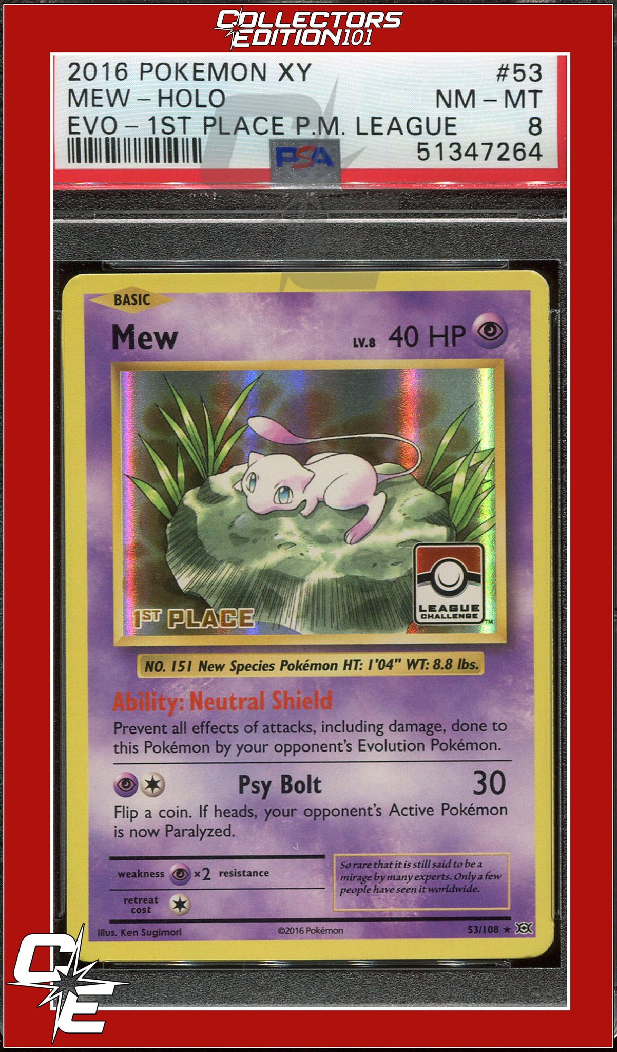 XY Evolutions Mew 53 Holo 1st Place Pokemon League PSA 8
