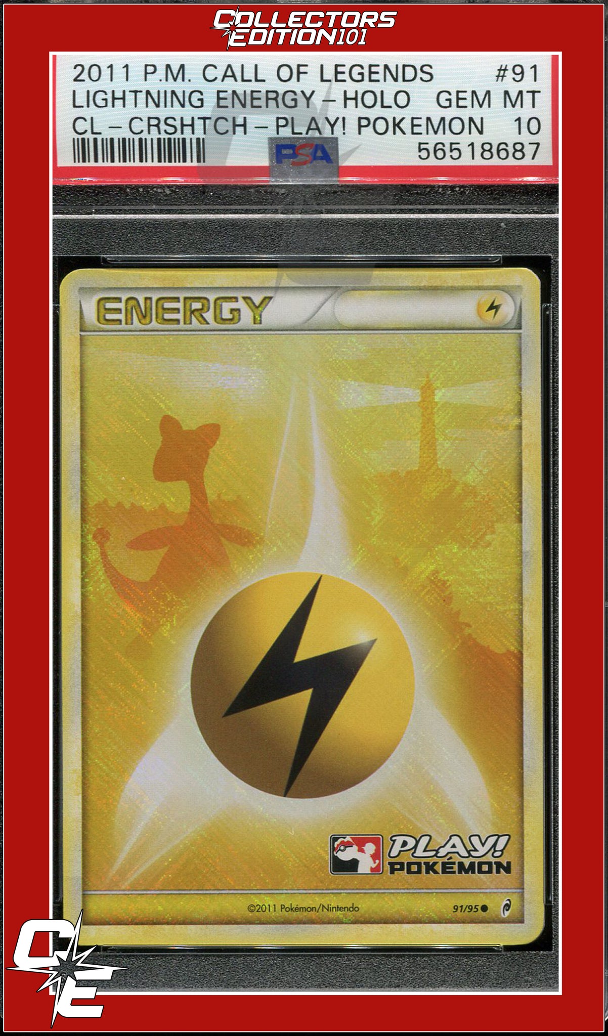 Call of Legends Lightning Energy 91 Holo Crosshatch Play! Pokemon PSA 10